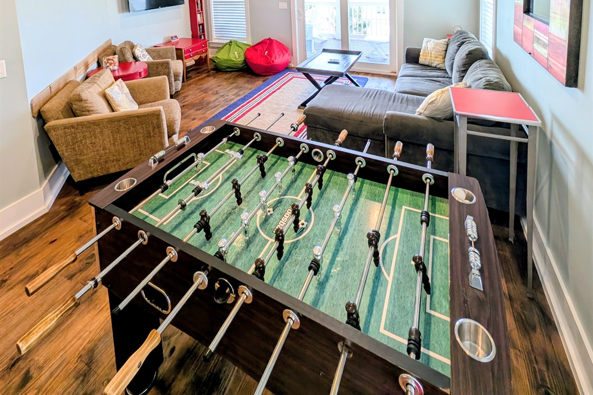 The ground level offers 2 master king suites with two full baths and one is wheelchair friendly. This first floor layout includes a living room, dining room and full kitchen as well as direct access to the backyard and pool area. The first floor offers the option to allow some privacy from the upper floors. It is ideal for multi-generations and multiple families traveling together giving privacy and a separate space while still being "connected". Perfect for an in-law suite, nanny, grandparents, or the bride and groom to be!