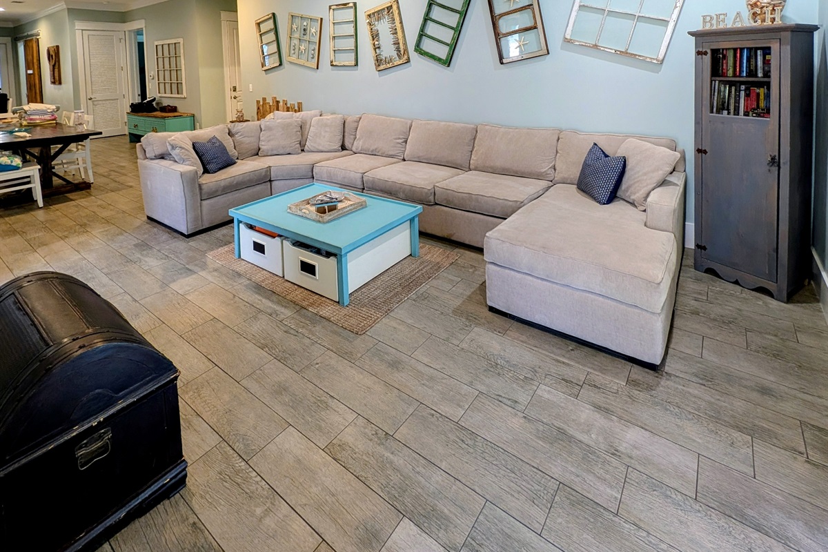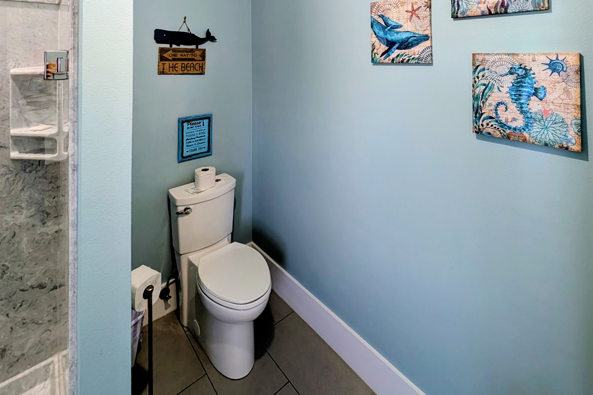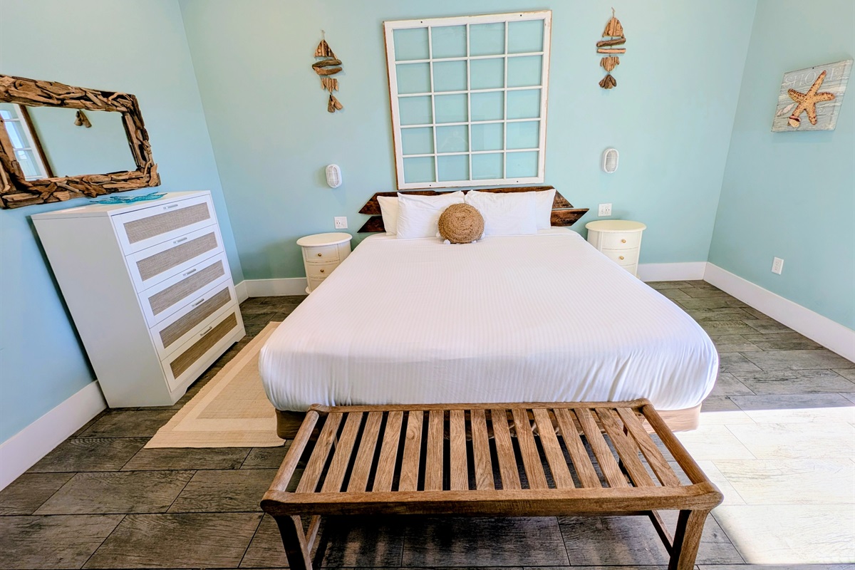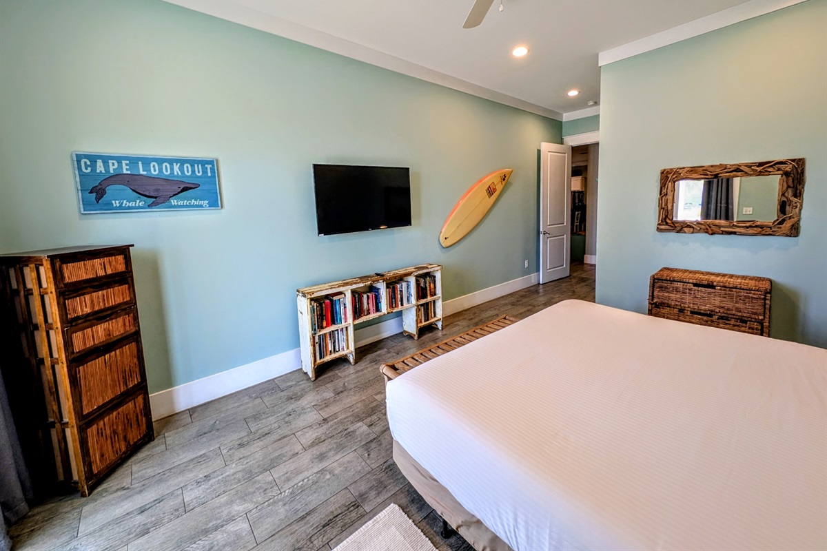 Continue your way upstairs and continue the amazing Gulf views! This top level floor offers 2 more king bedroom suites including one with sliding glass doors that open to the oversized deck and ocean views in every direction, 1 queen bedroom suite with a private bath including a large walk in shower, 1 wood, custom built queen bed with Twin XL trundle and optional queen bunk if needed (3 beds sleeps up to 5), and a cute twin bunk room for the kids. There is also a sleeper sofa in the common area on the third floor for any overflow sleepers.